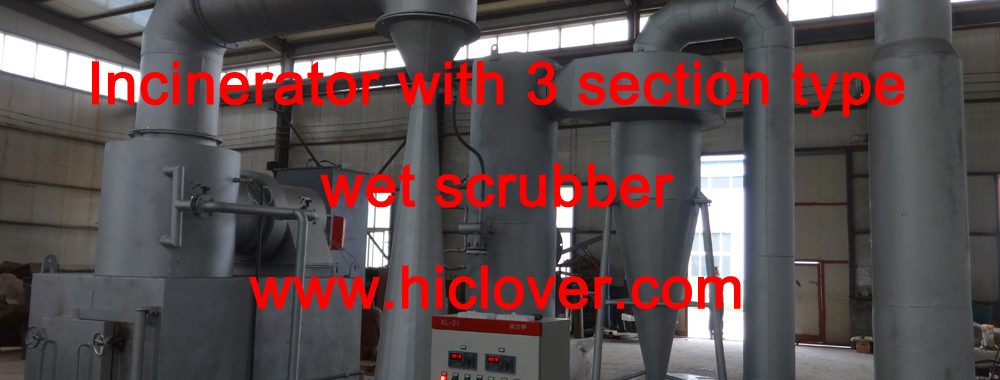 Incinerator with 3 section type wet scrubber